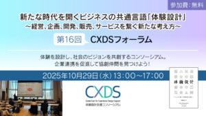 世界に挑むためのビジネスの共通言語「体験設計」 ~経営、企画、開発、販売、サービスを繋ぐ新たな考え方~ 第16回 2025年度CXDSフォーラム 企業が次のステージへ挑戦するためには、経営・企画・開発・販売・サービスをつ […]